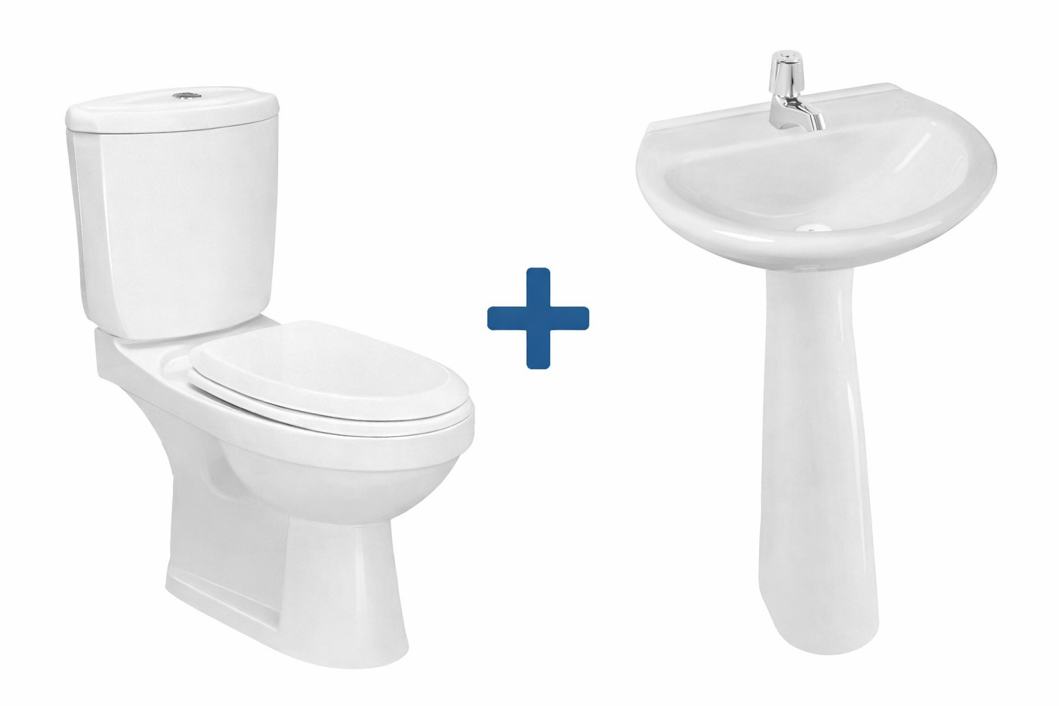 Inodoro Mochila Oslo + Lavatorio y pedestal Blanco Acuacer