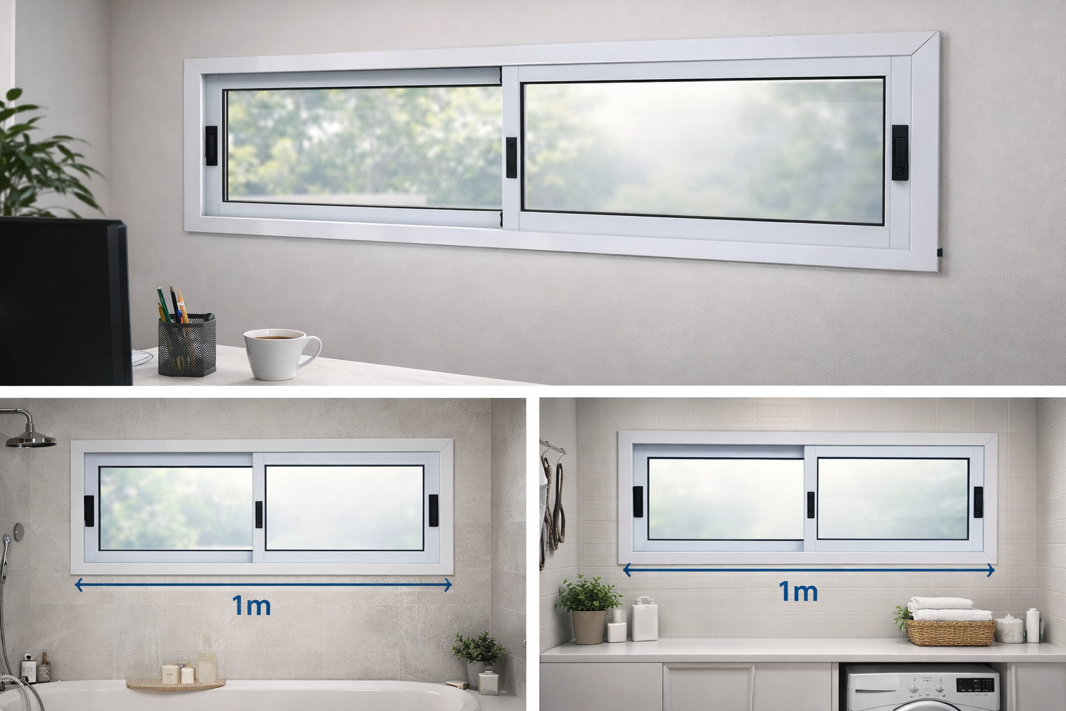 Una solución práctica para sumar luz natural y ventilación en ambientes pequeños. Su estructura en aluminio anodizado y vidrio de 4 mm asegura firmeza, buena terminación y un uso prolongado.